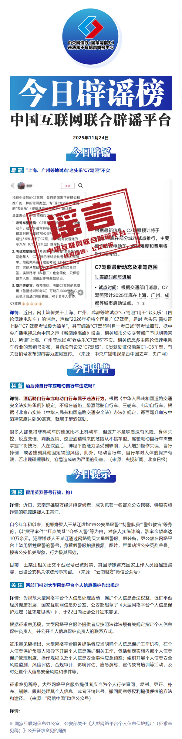 上海等地試點“老頭樂”C7駕照?——今日辟謠(2025年11月24日)