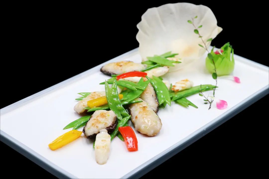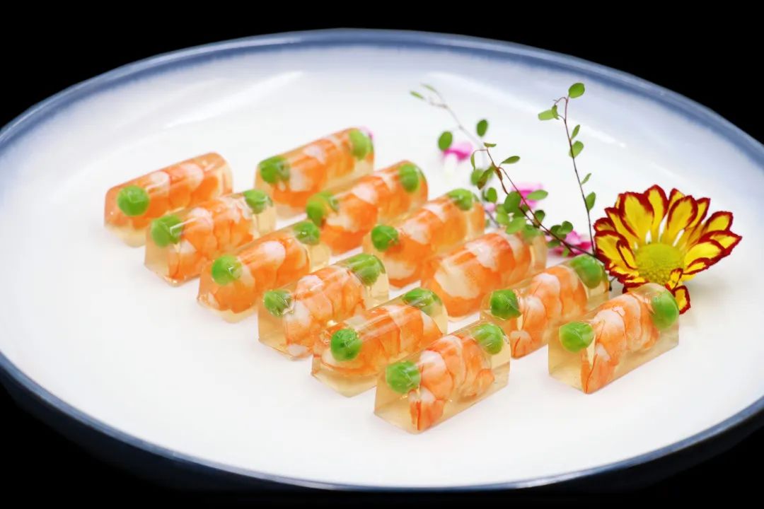 水晶凍鎖住蝦的鮮味 佐以青豆鮮甜入味 誘人的清鮮 得以在口中長久停住 煎釀羊肚菌 鮮嫩馥郁、菌香四溢 咀嚼間蕩漾著山野氣息 讓味蕾與“鮮氣”撞個滿懷 恣享羊肚菌的至味與清歡