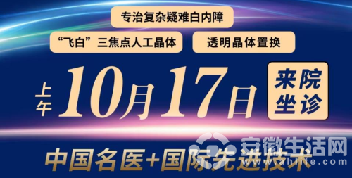 摘要: 還在為復雜白內障四處求醫?還在糾結跨省看診的奔波之苦?10月17日上午,國內眼科領域“白內障診療權威”朱思泉教授將親臨合肥華廈名人眼科醫院,為安徽眼疾患者帶來“足不出皖,尊享北京名醫親診”的重磅福利,讓你在家門口就能觸摸國際眼科技術的前沿脈搏!